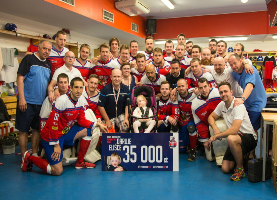 Hokejbalisté, když se dozvěděli o možnosti pomoci malé Elišce, rozhodli se jí věnovat finanční prostředky, které mezi sebou nashromáždili. A vybrali pěknou částku 35 tisíc korun! Nebyli sami, Českomoravský svaz hokejbalu se přidal a přidal 34 625 korun.